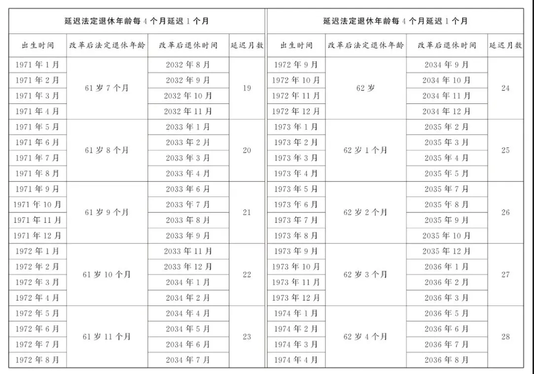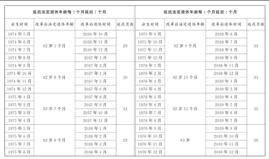 具体的男职工延迟法定退休年龄对照表如下图所示⬇️